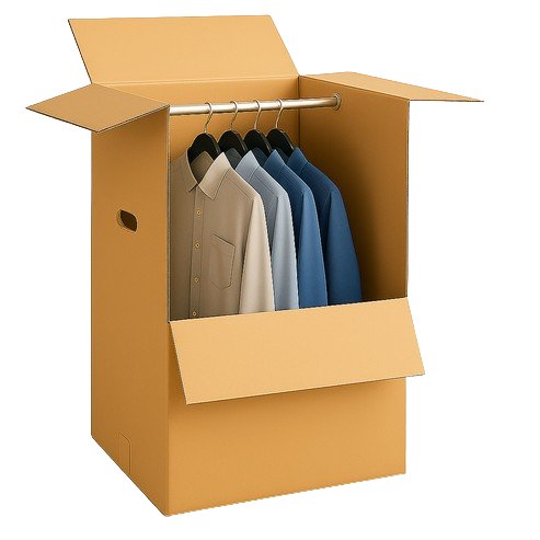 Made from durable ECT 32 kraft corrugated cardboard, each box provides excellent protection for suits, dresses, jackets, and seasonal wear. The strong design supports multiple garments, while the natural kraft finish ensures a clean and professional appearance. Whether you’re relocating, managing retail inventory, or organizing long-term storage, these wardrobe boxes protect your clothes from dust, crushing, and damage.
